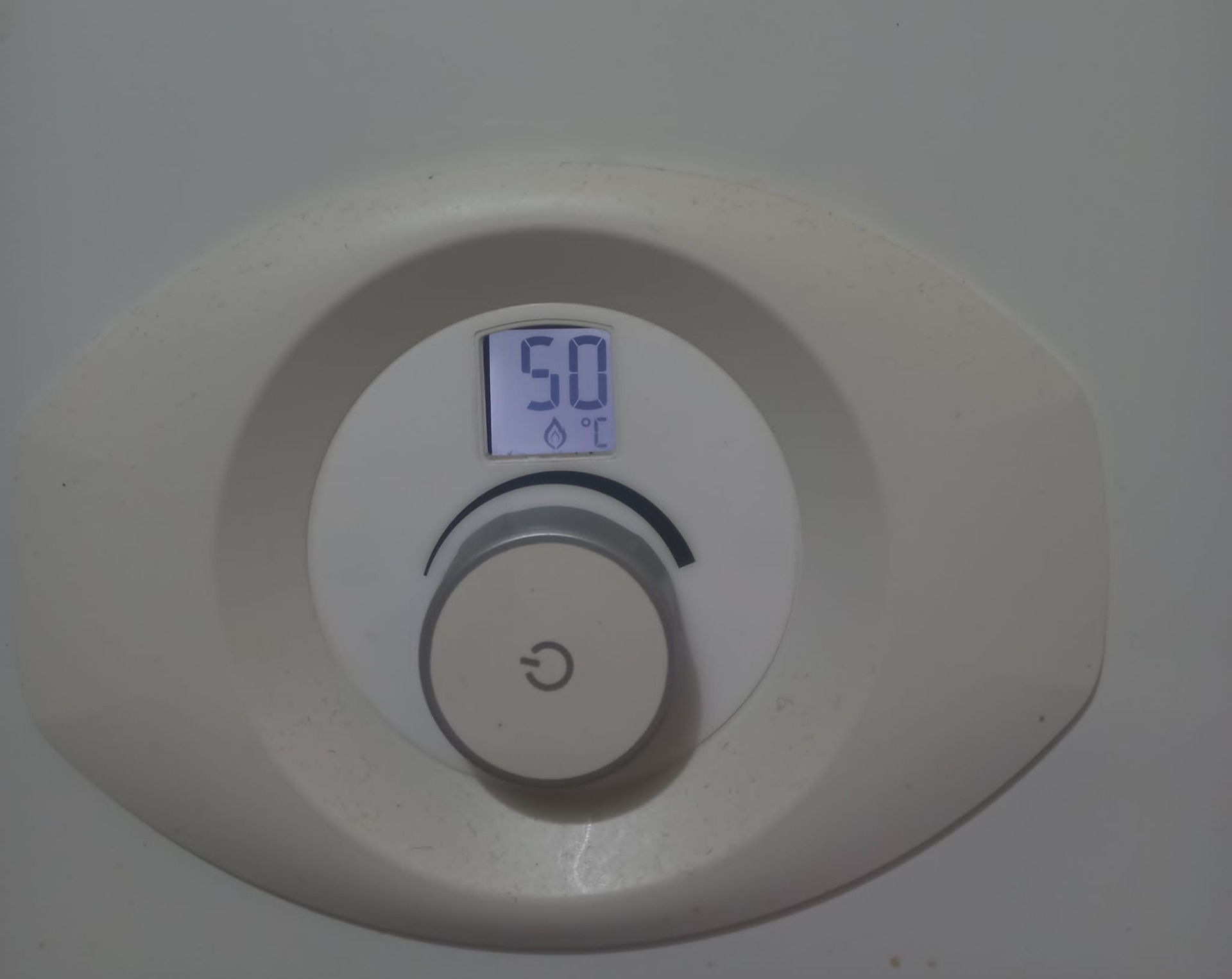 - Caudal de Água: Abra a torneira de água quente a meia abertura. Se abrir muito, a água passa rápido demais e não aquece. Ajuste o caudal.